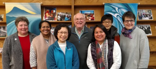 Hosted by Steven Bevans, SVD, interim Director of the Center for the Study of Consecrated Life at CTU and accompanied by the WWA Program Director, Julia Prinz, VDMF (a presenter at Congress 2015), several Women of Wisdom and Action participants spent a week at CTU in January, where they visited organizations serving religious life, the Religious Formation Conference among them. RFC Executive Director, Ellen Dauwer, SC, met with them for lively conversation about the Conference and its service to religious in the U.S. and abroad, the latter especially through its webinar offerings. In turn, she learned about Women of Wisdom and Action and the formation of women religious in participants’ home countries. Who knows what future possibilities for collaboration conversations such as this one may hold?